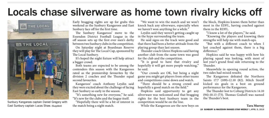 Locals chase silverware as home town rivalry kicks offTara Murray - Sunbury & Macedon Ranges StarApr 9, 20190 min read